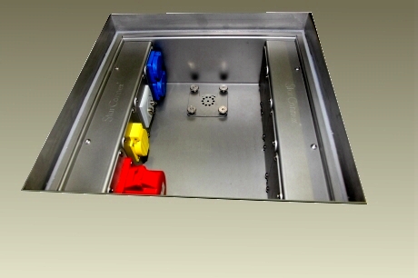 Bodentank 400 x 400 mm, Deckel mit Granit belegt und mit getrennten Leitungsausgängen für Elektro und Wasser