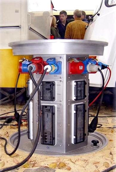 Intrekbare voedingspalen zorgen voor aansluitingen voor stroom, data, water en afvalwater in de buitenruimte voor tijdelijk gebruik. De apparaatkolommen kunnen dan op hetzelfde niveau in de grond worden geplaatst. In tegenstelling tot ondergrondse tanks zijn de aansluitingen tijdens het gebruik vrij toegankelijk en dus eenvoudig te bedienen. Het is belangrijk dat ze zo zijn ontworpen dat ze veilig zijn voor kinderen in openbare ruimtes en dat de in de apparaatzuilen geïntegreerde verdelers water- en stoomdicht zijn vanwege de temperatuurverschillen.